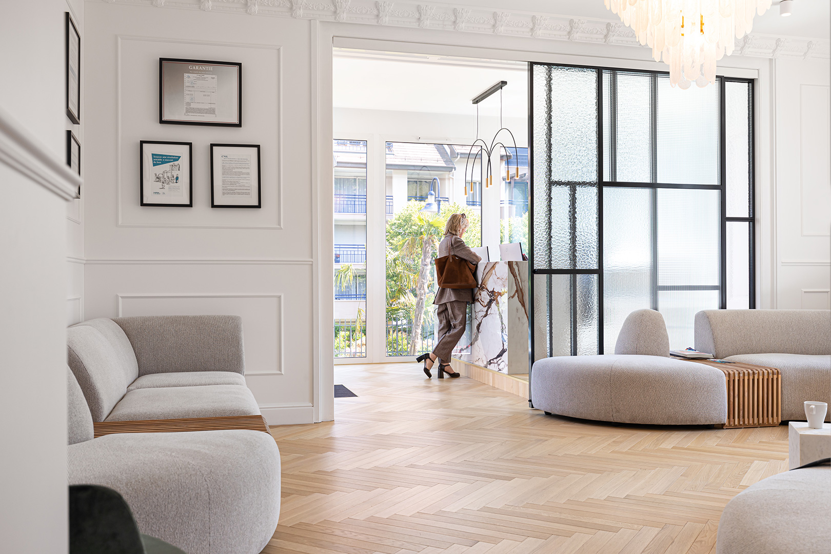 The organization of the program is conventional; the ground level consists of common areas and the first level of private spaces. The added value of this results from the double height and the very fluid communication between the interior and exterior areas thanks to the large windows on the full south side.